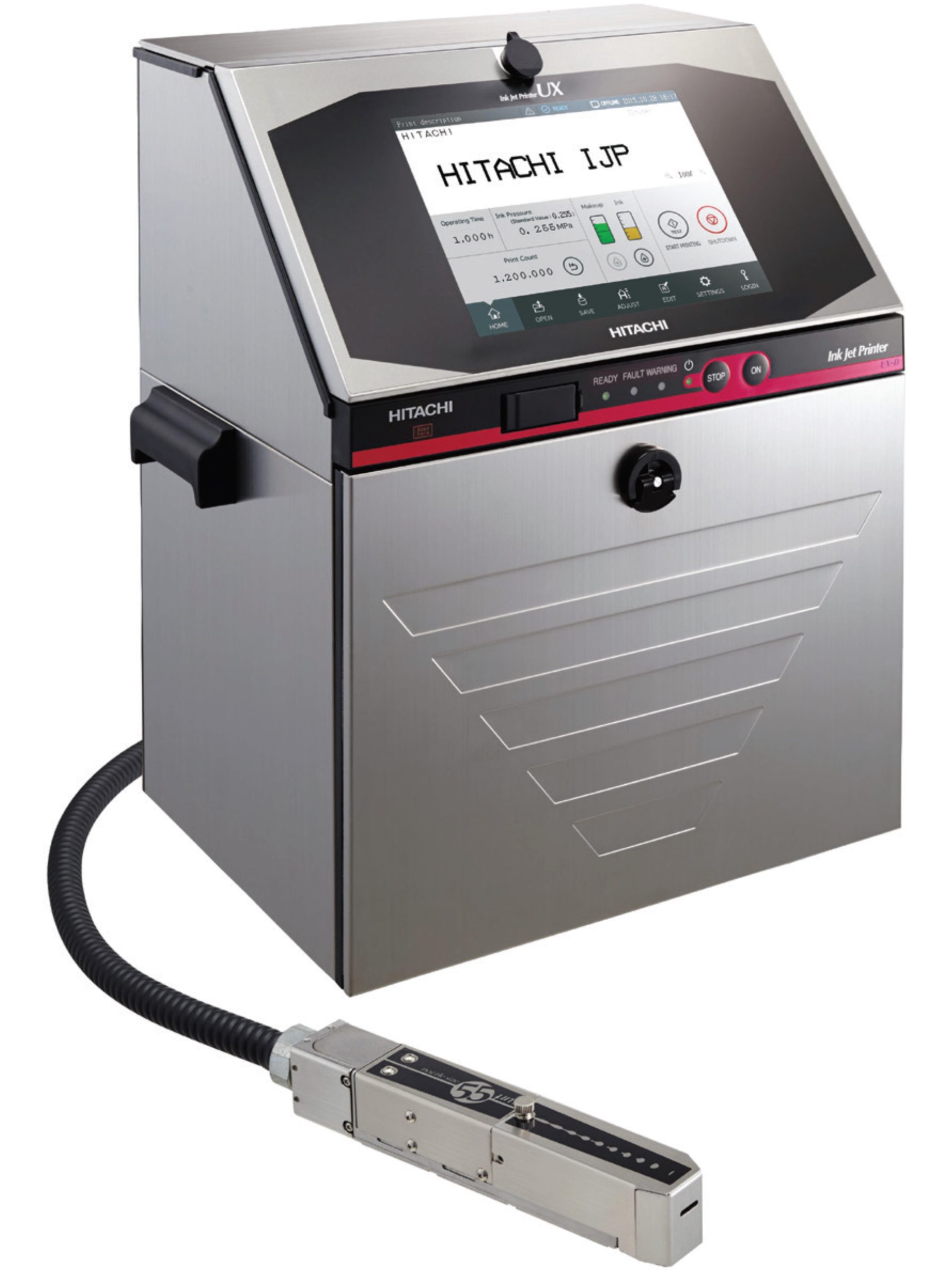 The UX2 High Speed CIJ Printer is designed to print characters at high speeds with superior quality – a feature valuable for industries like beverage & canning. High production line requirements wont need to sacrifice quality for speed with this printer. The UX2 High Speed printer includes standard features to Hitachi’s UX lineup, such as on-screen video guidance, Smart Bottle Cartridge Design, Hitachi’s patented ink guard & the optional Safe Clean Station.